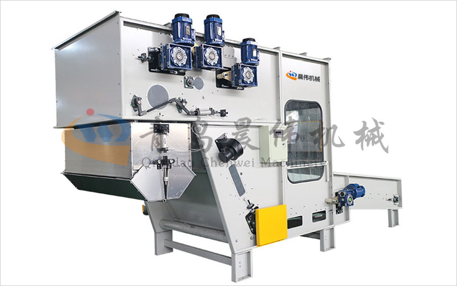 將各種等級整包或半包料進(jìn)行初步打開,無需人工抖棉,降低勞動強(qiáng)度,通過稱重系統(tǒng)PLC計(jì)算進(jìn)行準(zhǔn)確配比,均勻平鋪到長簾上。